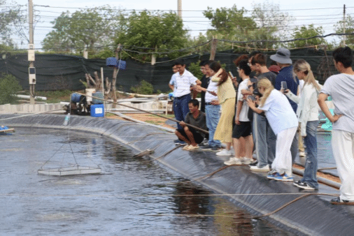 8 月 24 日,访学团师生前往芽庄大学,实地参观其下属实验基地与海水网箱养殖场,深入探访当地特色鱼类养殖产业的技术实践与发展现状。