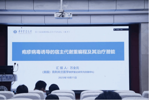 同样线上参会的万全元博士,聚焦“疱疹病毒诱导的宿主代谢重编程及其治疗潜能”。他发现KSHV病毒编码的vCyclin会劫持宿主CDK6,形成复合物磷酸化激活嘧啶合成关键酶CAD,驱动有氧糖酵解(乳酸生成量提升2.7倍)与嘧啶从头合成(UTP/CTP合成量增加3.5倍),为病毒复制提供能量与原料。体外实验显示,干扰CAD或CDK6后,病毒复制关键基因表达量降低80%;体内模型中,原发渗出性淋巴瘤细胞生长速率下降70%。更重要的是,该研究还揭示CAD激活可抑制Ⅰ型干扰素应答,帮助病毒逃避免疫清除,为抗病毒治疗提供全新靶点。