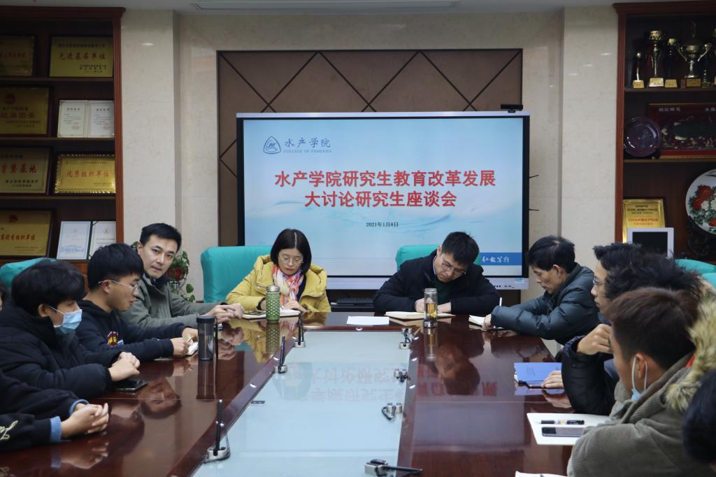 (pa电子官方网站通讯员 裴福成 供图 谢宏宇)2021年1月8日下午15时,pa电子官方网站研究生教育改革发展大讨论研究生座谈会在水产楼209举行。学院副院长刘春生、党委副书记曹玉琼、研究生教务秘书喻海燕、研究生辅导员吴昊以及学院博士和硕士研究生代表参加座谈会。