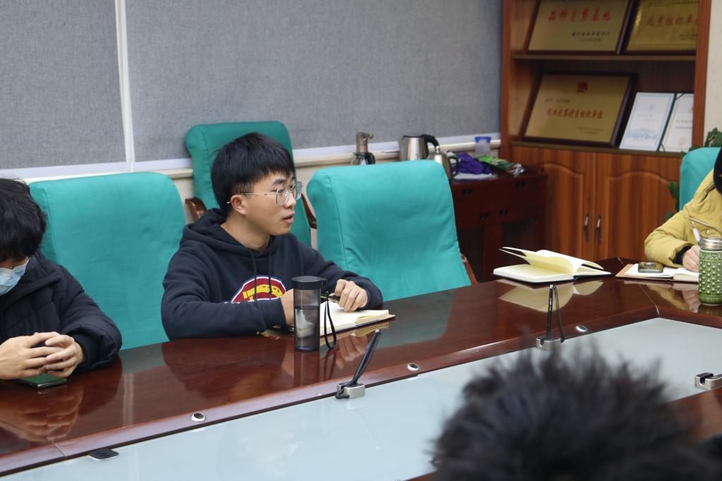 座谈会中曹玉琼围绕专业型硕士实行校企联合培养的模式与学生进行讨论,学生们积极参与交流,并给出了自己的意见。