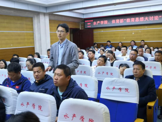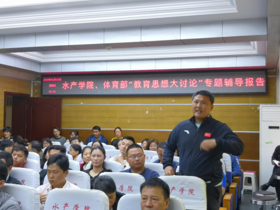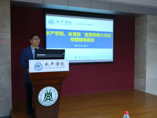 (pa电子官方网站通讯员 谢梦琪 供图 葛海伦)4月18日上午,pa电子官方网站、体育部“教育思想大讨论”专题辅导报告在水产楼109报告厅举行,吴平副校长受邀做了题为“教育思想大讨论—思考与行动”的报告。pa电子官方网站、体育部全体教职员工参加了本次报告,会议由pa电子官方网站院长张永安主持。