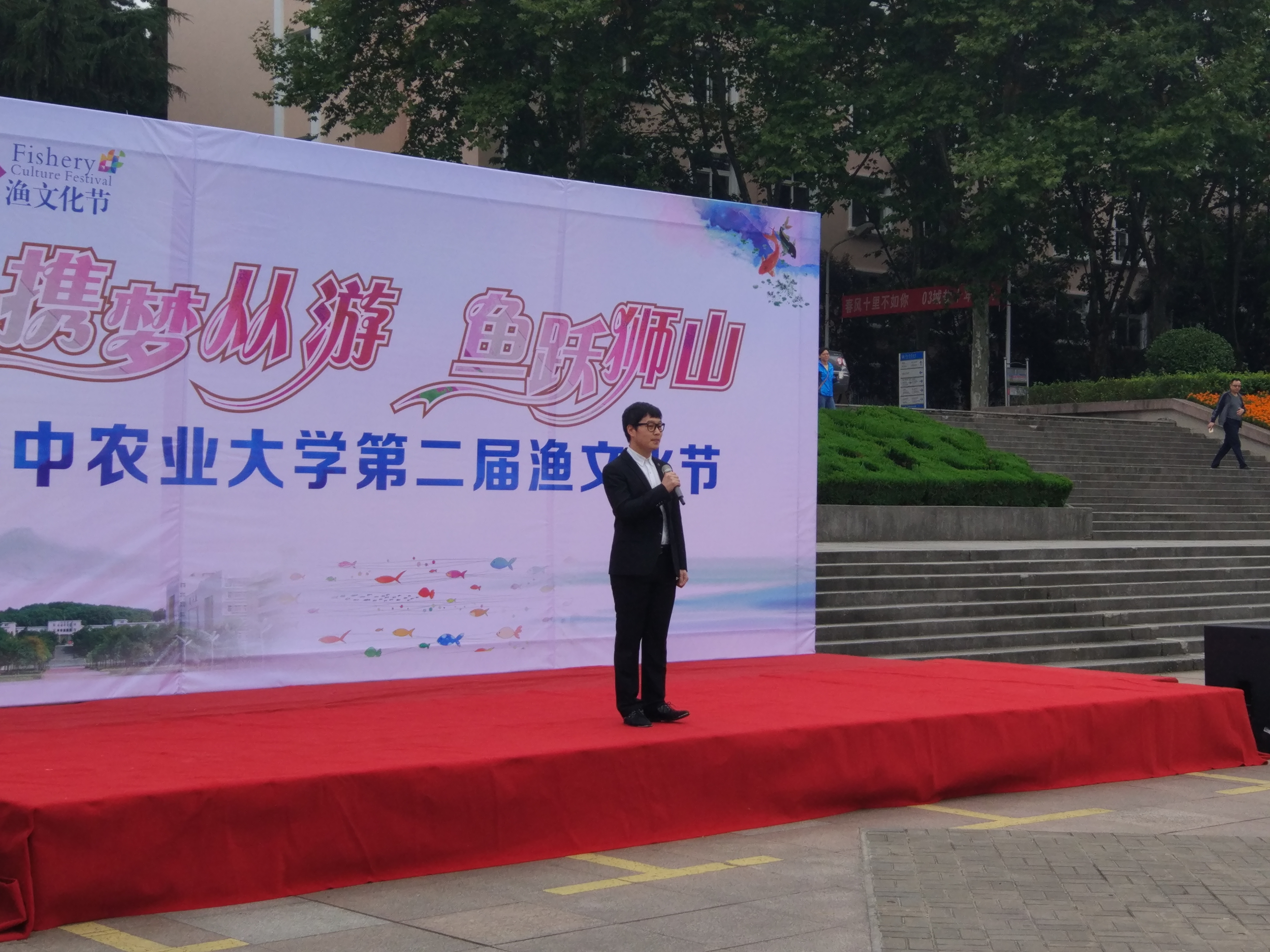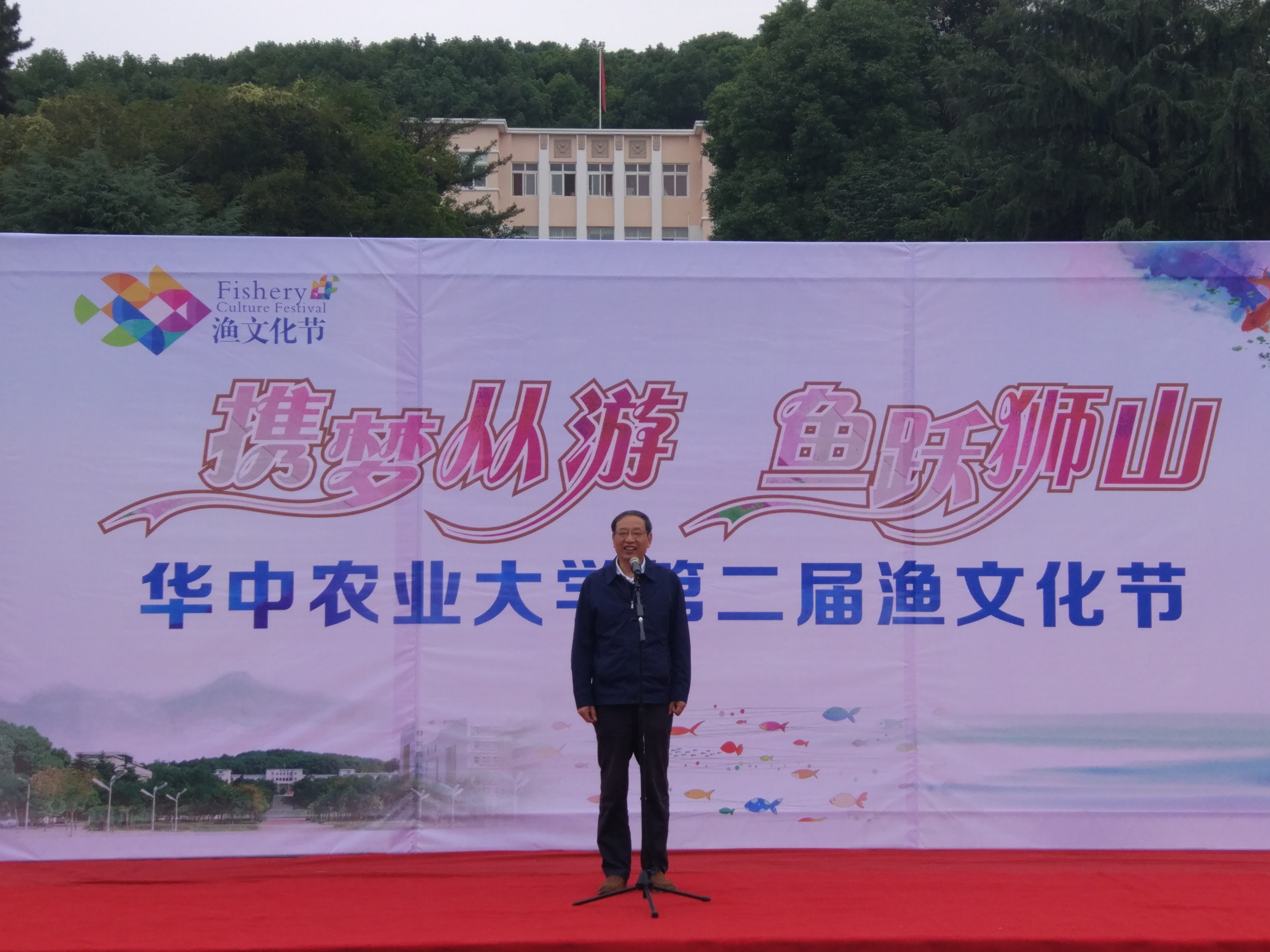 南湖网讯【学通社记者 朱雨萱 郑灿栩】 10月15日上午,以“携梦从游,鱼跃狮山”为主题的pa电子官方网站第二届渔文化节在狮子山广场拉开帷幕。副校长李崇光、党委学生工作部部长漆勇政、党委宣传部部长程华东、教务处处长江珩、校团委书记张拥军等出席开幕式。