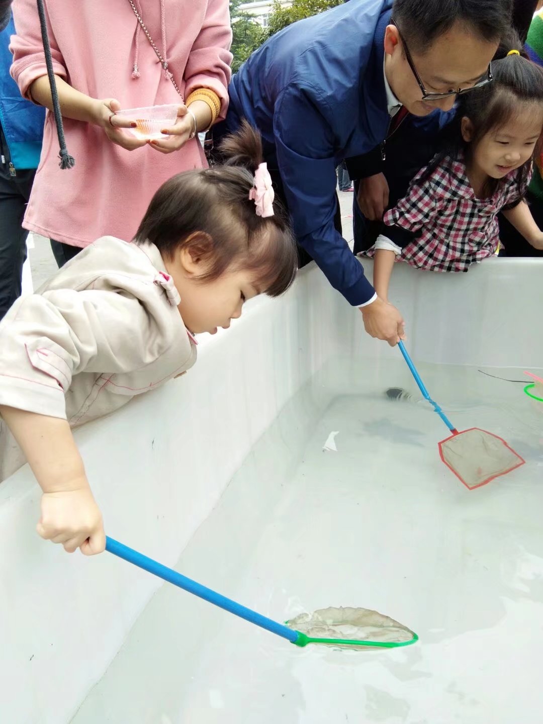 在广场的另一侧,“快到网里来”的活动帐篷前排起了长队。帐篷里,孩子和家长正在参加趣味网兜捕鱼活动,每位参与的小朋友都能获赠金鱼一条。孩子们在活动中近距离接触鱼,体验渔文化,一天下来主办方准备的900余条金鱼被捕捉干净。