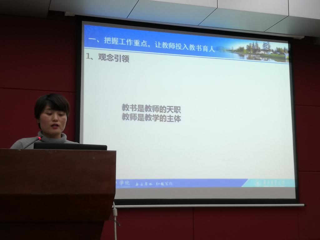 随后进行的是学院年度优秀评选汇报工作。学院各系、行政教辅老师共推荐出15名老师参加学院年终优秀评选,经过每人5分钟的现场汇报,最终蔡徐涵等12名老师被评选为学院年度考核优秀人员。