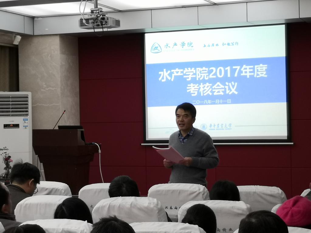 1月11日下午2:00,pa电子官方网站2017年年度考核会议在水产楼109顺利进行,学院党委书记张韶东、院长王卫民等九十余名教职工参加了本次会议。会议由张韶东主持。