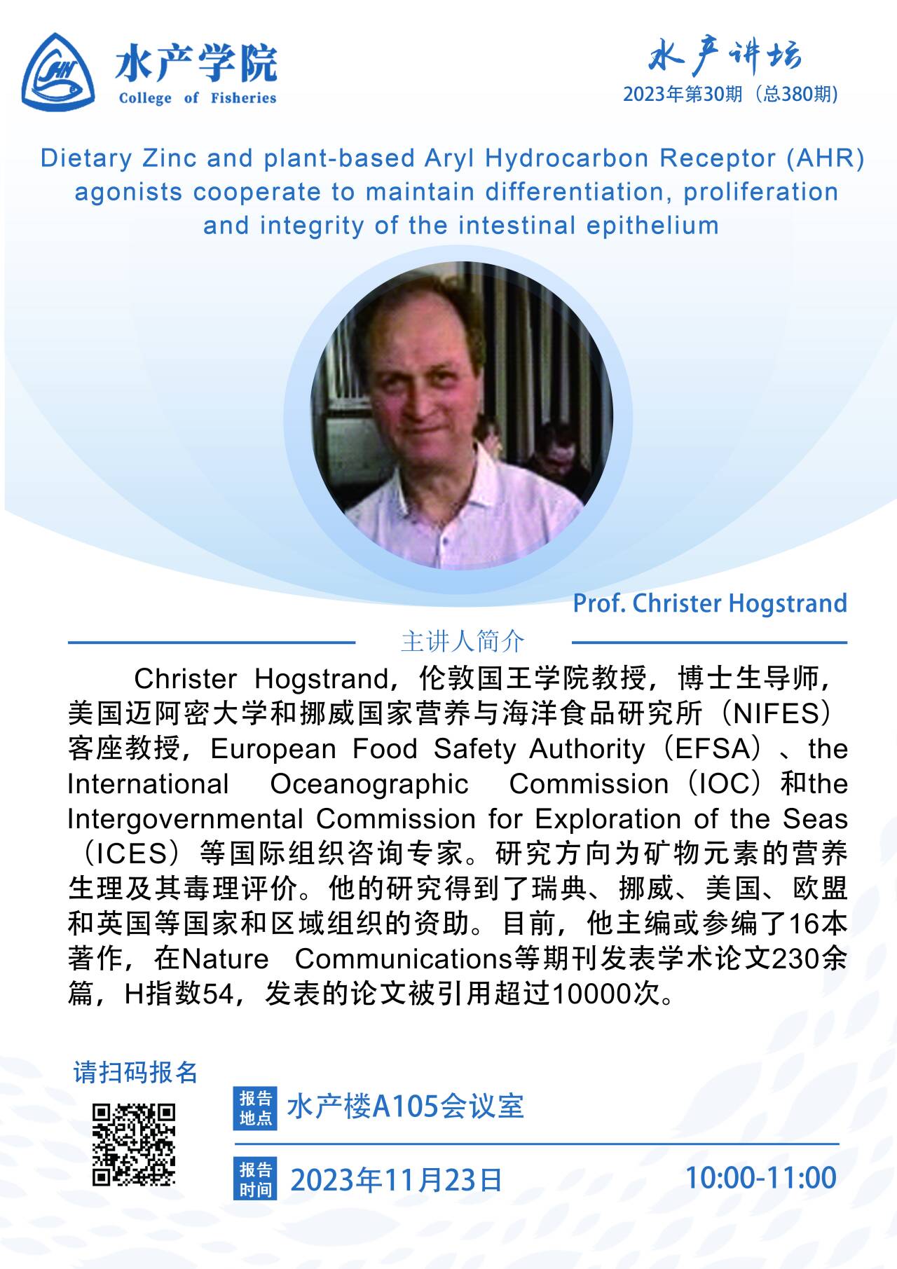 水产讲坛-Prof. Christer Hogstrand