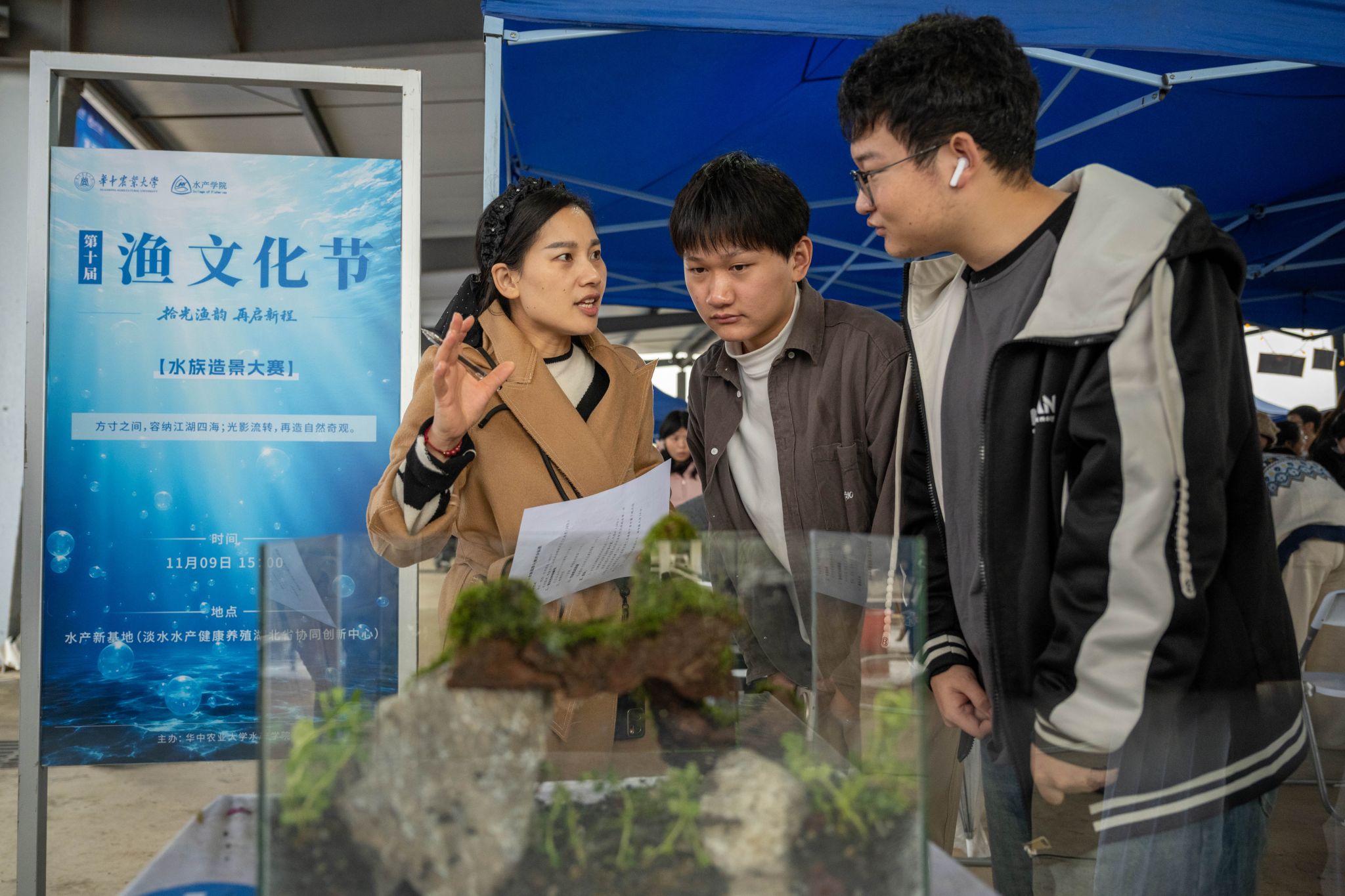 11月9日,以“拾光渔韵·再启新程”为主题的pa电子官方网站第十届渔文化节在校内水产教学科研基地举行。本次活动包含水族造景大赛、趣味活动区、全鱼宴、垂钓大赛、文创作品展示区和十周年回顾区六大板块。
