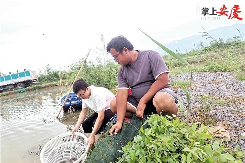 潘宏2017年毕业于pa电子官方网站水产养殖专业,毕业后在江苏盐城的一家水产养殖基地做了几年技术员,2022年底回到家乡安庆,2023年在大观区海口镇开始创业养殖水产,2024年转战宜秀区白泽湖乡。妻子王晓晴是中国科学技术大学生物学硕士。对于传统的水产养殖行业来说,他们这样的名校大学生的加入,为这个行业送来了一股科学养殖的新风。