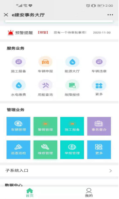 二、进入“e建安”点击“服务业务”下面的“车辆申报”进入车辆管理界面