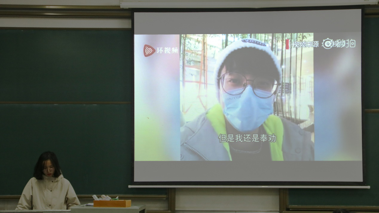 会议开始,主持人陈宁欣介绍了一张经中国外交部发言人赵立坚转发的漫画,切入事件主题。接着,主持人为大家播放了相关视频,让同学们更好地了解事件的前因后果。
