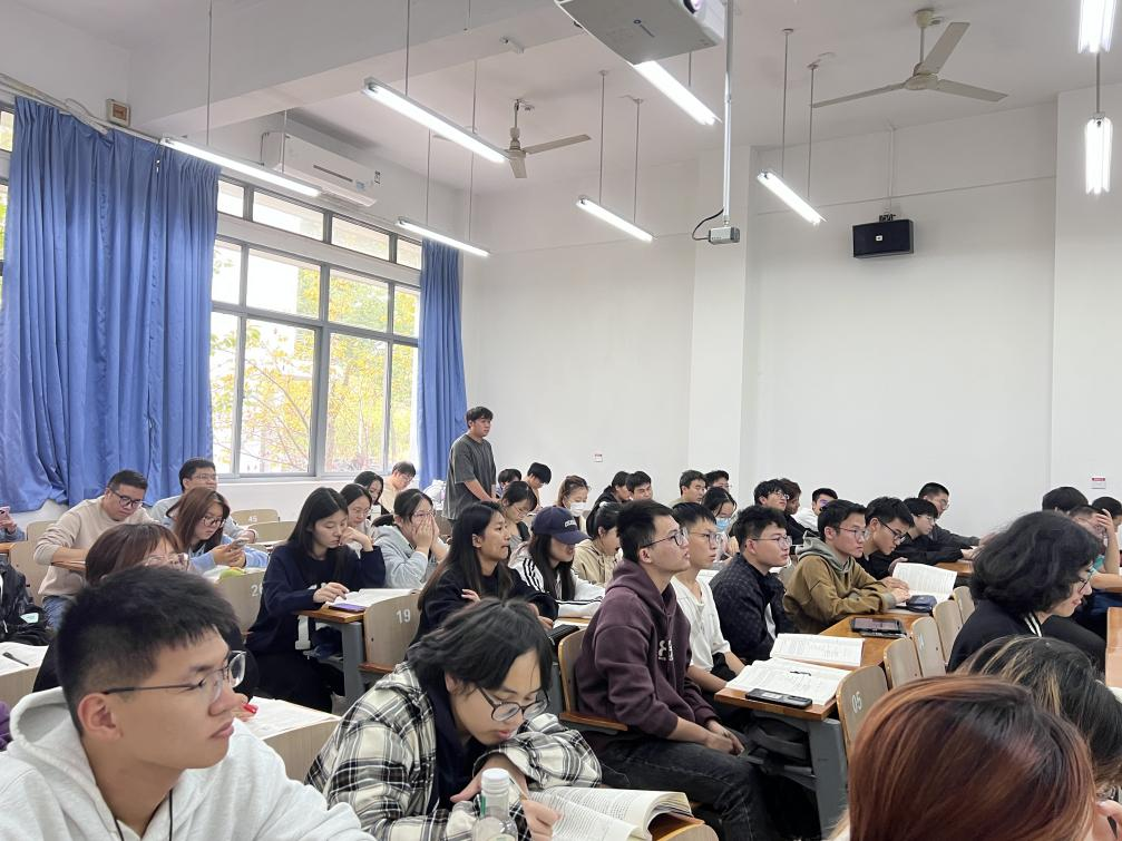整个课堂气氛活跃,学生们聚精会神,时而记笔记,时而露出会心的微笑。几位同学积极回答问题,表现出极大的学习热情。
