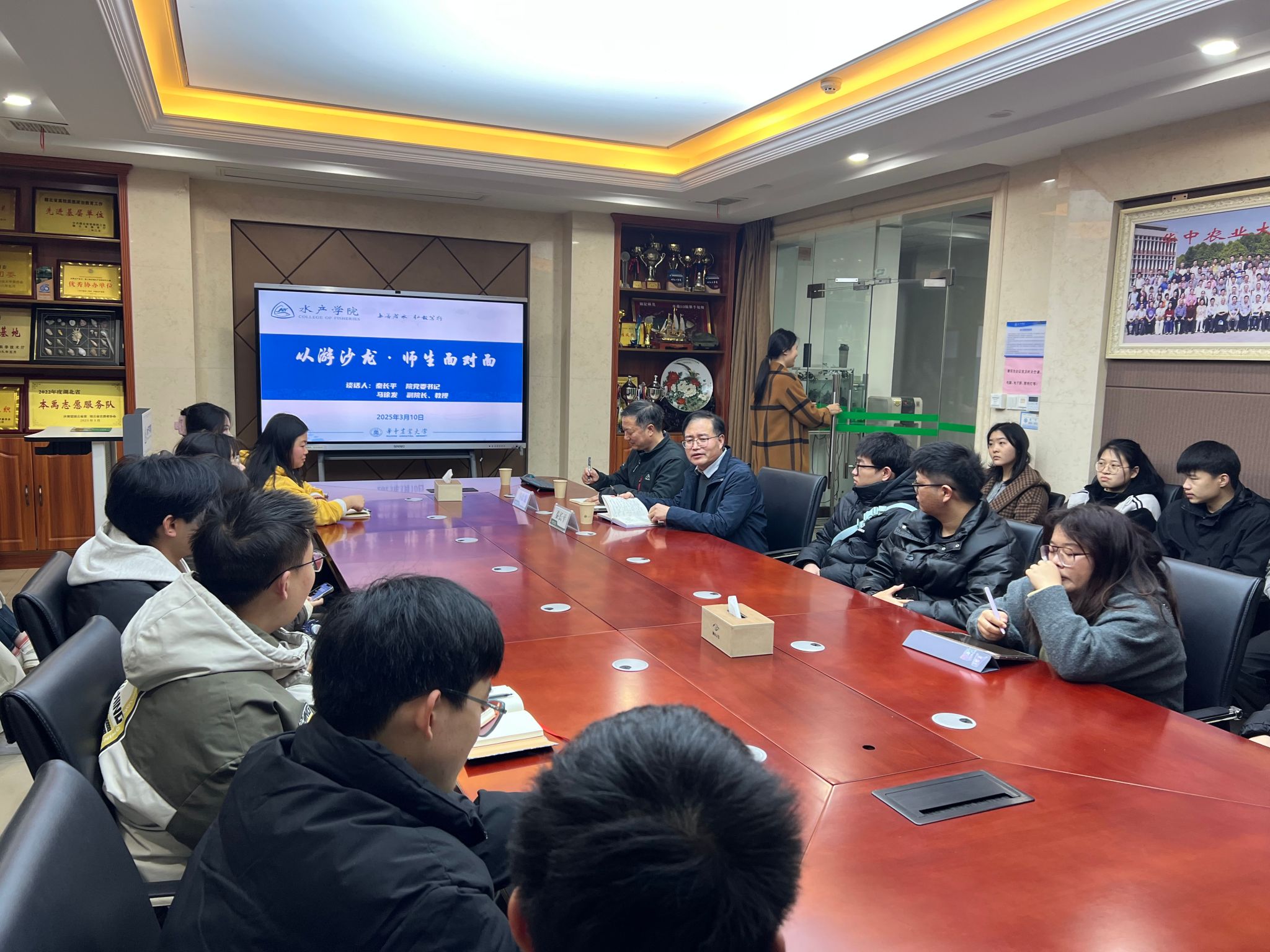 3月10日晚,pa电子官网“从游沙龙”师生面对面活动在水产楼A201举行,学院党委书记秦长平、副院长马徐发与同学们座谈交流,学位与研究生教育秘书庄子梦主持活动。