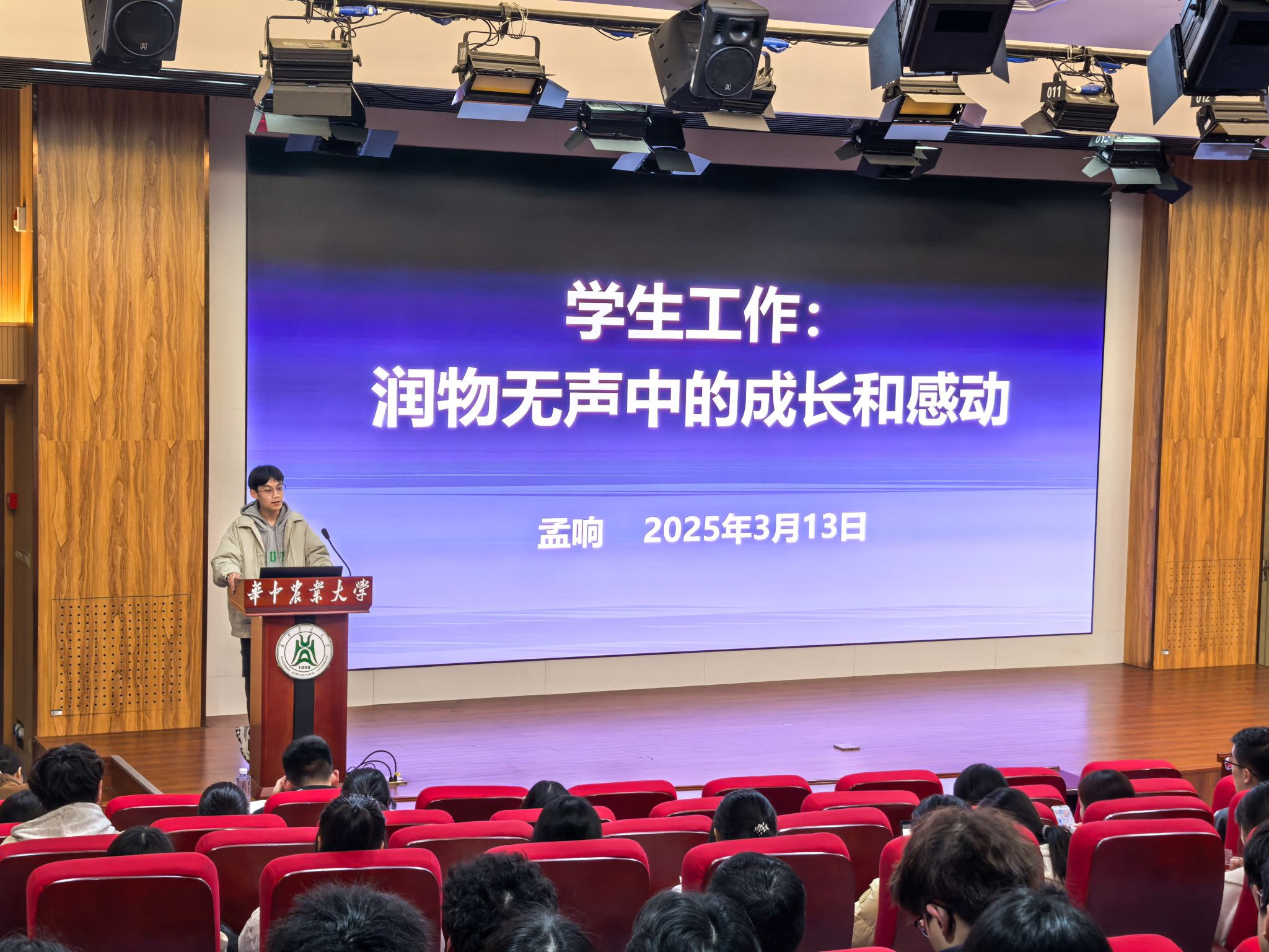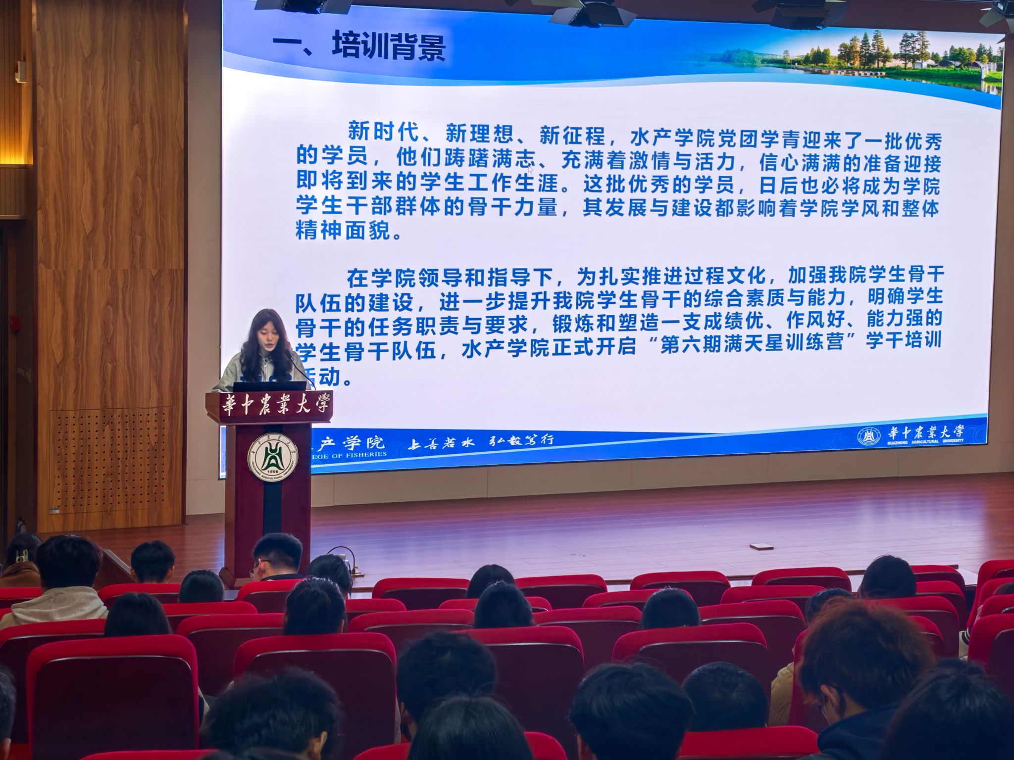 近日,pa电子官方网站“满天星训练营”开班仪式暨第一讲在农业微生物学国家重点实验室B座一楼报告厅举行。本次培训邀请到第五期优秀“满天星训练营”营员向一可、欧阳兰慧分享学生工作经验,学院学生工作部门全体学员、2024级班长和团支书参与本次培训。培训第一讲以“如何做好一名学生干部”为主题,由校学生会主席团成员、pa电子官网2021级学生孟响进行分享。