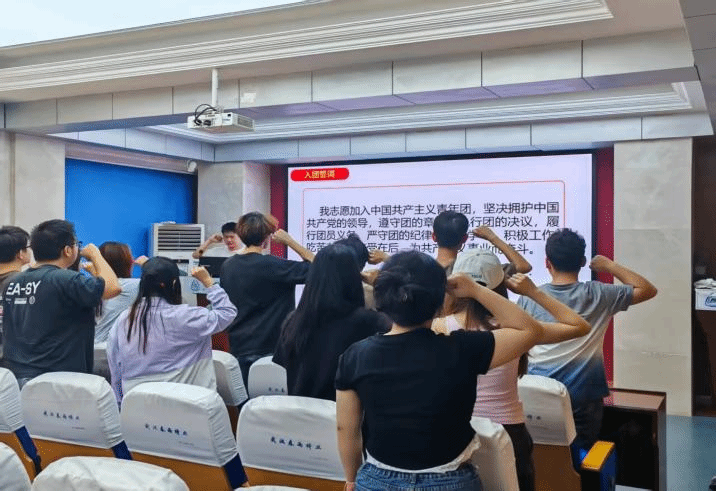 5月26日上午,pa电子官网在水产楼A105举办2025年春季新团员入团仪式。学院团委组织部负责人孙广浩、优秀团员代表叶姝涵及新发展的15名团员和院团委组织部工作人员参加本次仪式。