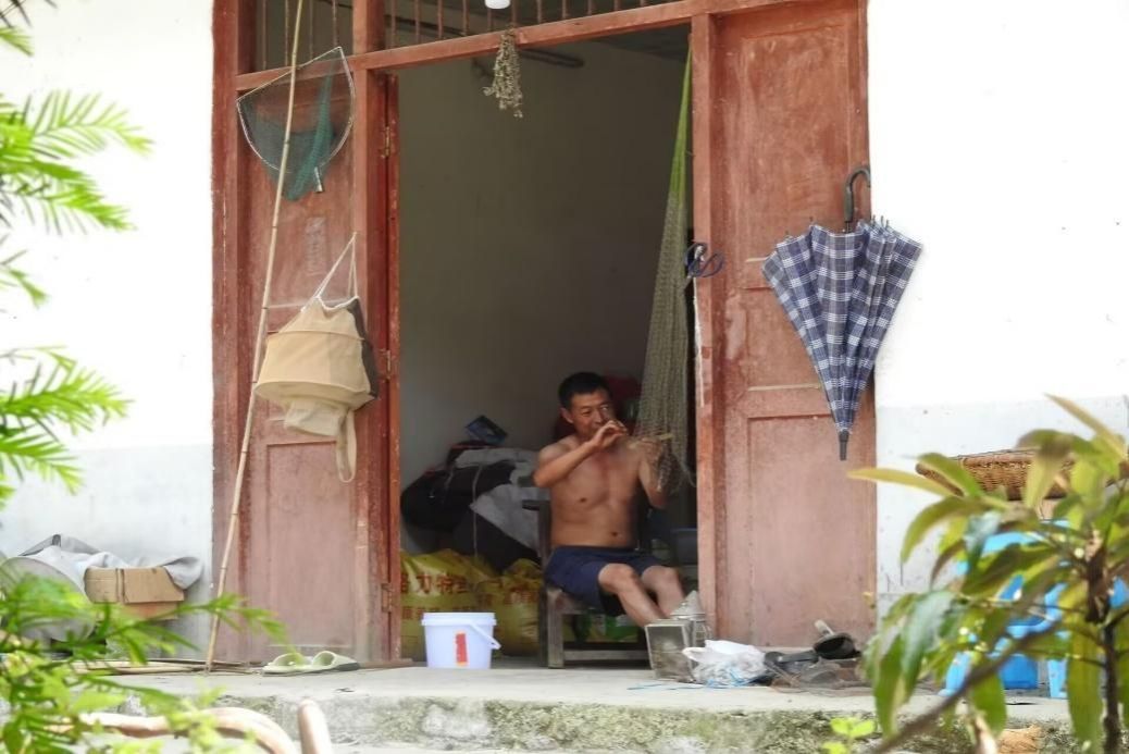 村民在修补鱼网(黄玫摄)