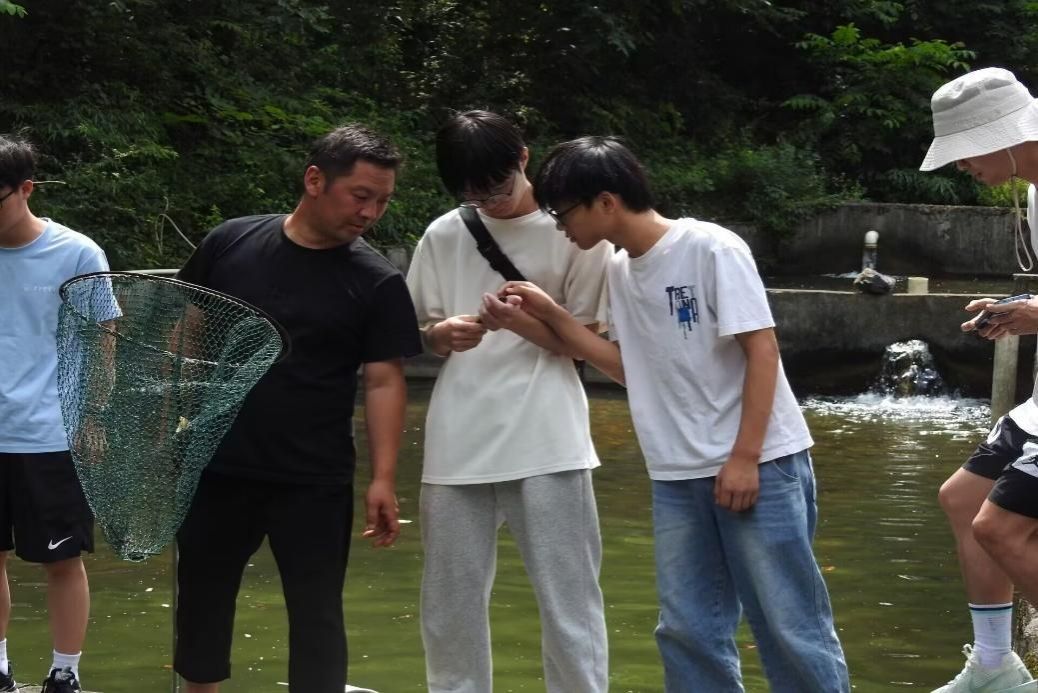 康露合作社的考察则是一场自然与产业的对话。轰鸣的瀑布旁,鱼塘中的多鳞白甲鱼和齐口裂腹鱼鱼苗密集游动,阳光下鳞片闪烁如银。更令人震撼的是“活化石”鲟鱼的存在,其悠久的演化史与冷水环境的完美适配,印证了神农架生态的独特性。团队沿溪流实地调查时,还观察到多鳞白甲鱼翻转腹部的习性,进一步理解了生态保护对养殖的重要性。