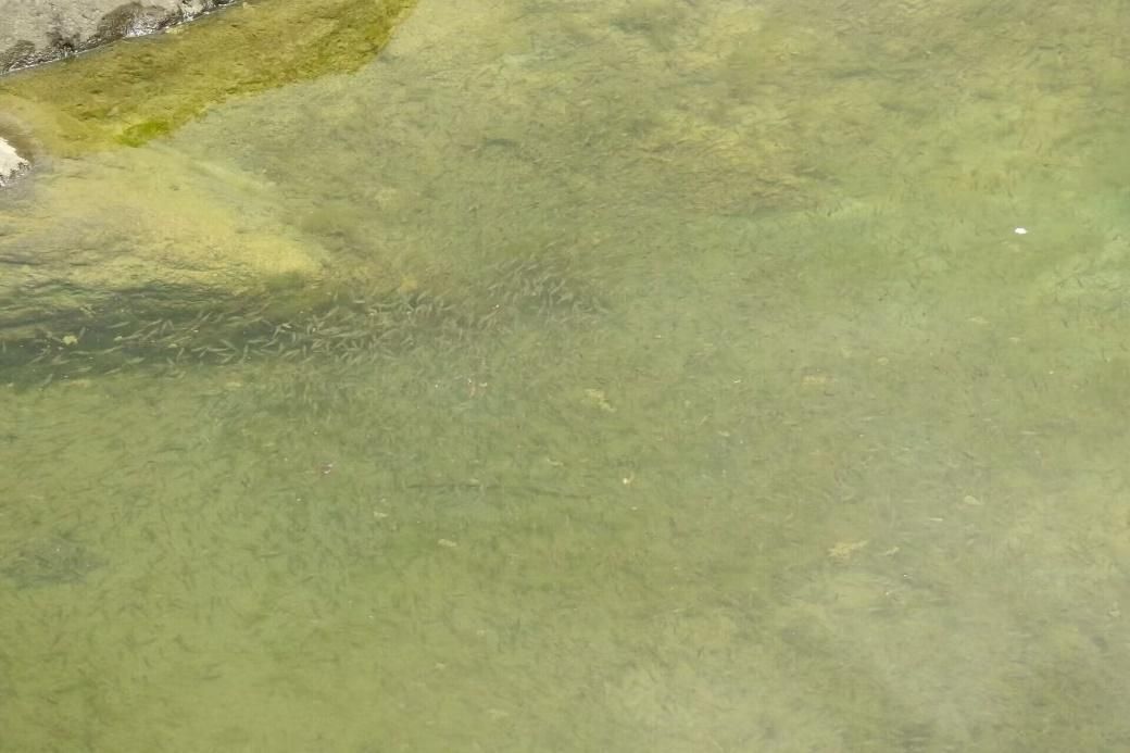鱼塘里密集的多鳞白甲鱼和齐口裂腹鱼鱼苗(黄玫摄)