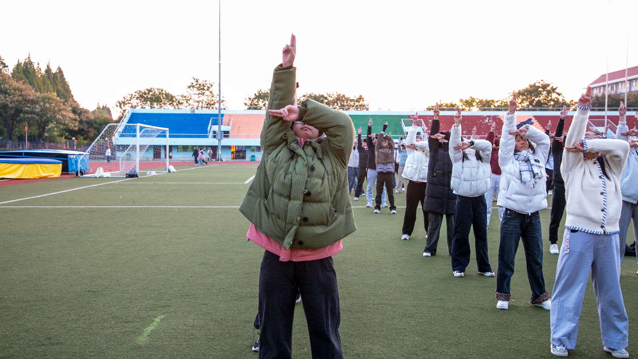 乐声响起 广播操队伍动作划一