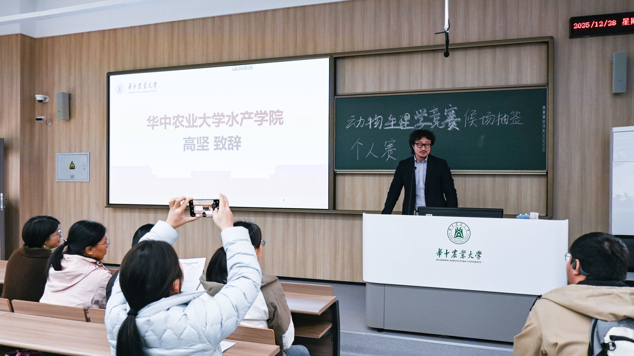 本次竞赛分为个人赛和小组赛,面向全校本科生,共有130余人报名参赛,经过赛前训练选拔后共有97位同学参加最终决赛。赛前致辞中,pa电子官方网站副院长高坚表示:“动物生理学实验是水产和动物科学等专业人才培养的核心实践环节,是理论落地实操的关键。希望大家能在实践中打磨技能,在交流中共同进步,也期待大家以冷静、规范的操作完成比赛。”随后,pa电子官方网站党委副书记曹玉琼送上寄语并宣布比赛正式开始。