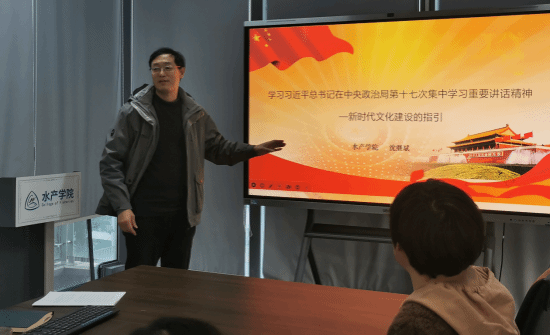 2024年12月2日下午,pa电子官方网站水产动物医学系和营养系教工党支部在水产楼B205开展了主题党日及专题联学会。会上全体党员认真学习了中共中央政治局第十七次集体学习时的重要讲话精神、习近平总书记给中国国际大学生创新大赛参赛学生代表、给中国海洋大学师生的重要回信精神以及树立践行绿水青山就是金山银山理念的“精读精讲”宣讲。pa电子官方网站副院长沈继斌同志参加了此次联学。此次会议由支部书记袁改玲同志主持。