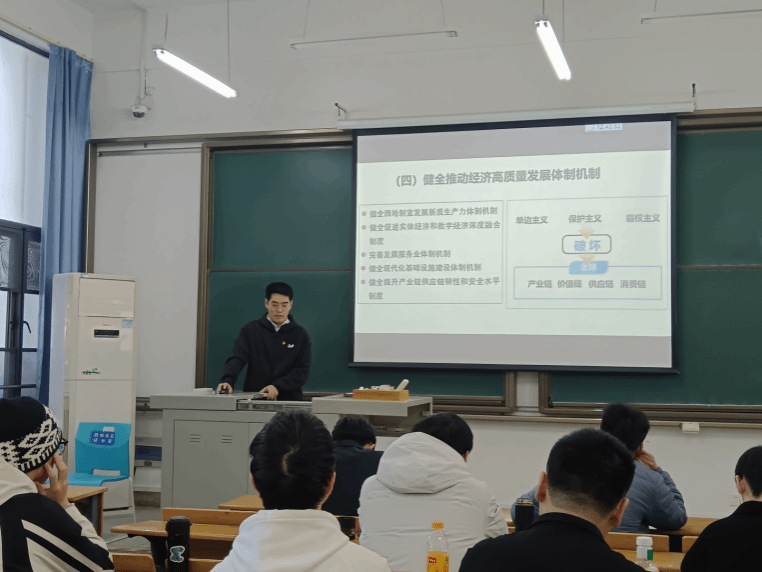 近日,为学习贯彻党的二十届三中全会精神,pa电子官网水产养殖学本科生第三党支部在四教A209举行了主题为《发展新质生产力,增强高质量发展新功能》的“精读精讲”宣讲活动,支部党员牛鑫涛进行领学。