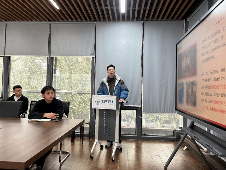 分享结束后,来自学生支部和教师支部的同志们纷纷发言,分享并交流自己对榜样事迹的感悟和心得。双水双绿研究生党支部书记杨成伟同志表示,伟大时代呼唤伟大精神,崇高事业需要榜样引领,在座的各位同志作为当代中国共产党人,将以这些优秀人物为榜样,拼搏奉献,担当作为。水生动物医学系教工党支部曾辉老师表示,作为教育工作者的责任和使命,要以榜样为镜,不断提高自身的教学水平,培养更多优秀的学生。涂家钢老师则强调要向榜样看齐,不仅要追求学术上的进步,还要关注社会问题,积极参与公益活动,为社会做出贡献。袁军法老师补充道,作为水产人应当坚守在一线基层,找出产业中存在的问题,将科研与实践相结合,将榜样精神贯彻到水产行业的方方面面。