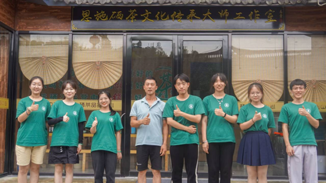 偶然的机会,实践团幸运地采访到了“恩施玉露”的第十一代传承人——蹇再鹏老师。蹇老师向同学们介绍“恩施玉露”从上世纪发展至今的历程,用熟练的手法为我们沏了茶,一边泡茶,一边为我们介绍工艺。“在他的身上,我看到了作为非遗传承人的坚守、认真与伟大,感受到了恩施玉露在现代化发展中对恩施州芭蕉侗乡的经济带动作用。” 支部党员段振玲说道。
