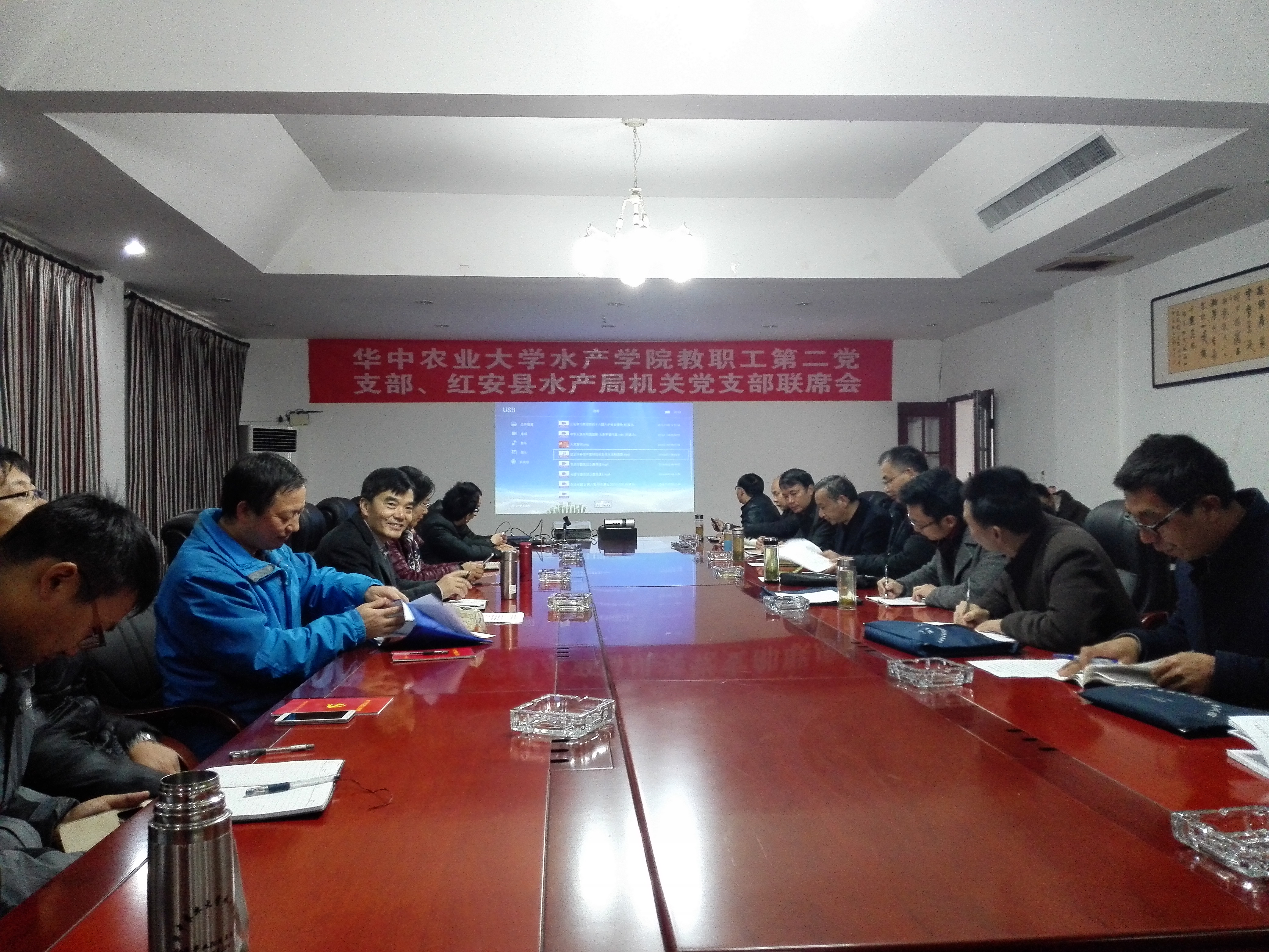 红安水产局詹才明局长表示,很高兴能与pa电子官方网站第二党支部成为结对共建支部,他介绍了水产局机关党支部认真开展“两学一做”学习教育活动的情况,通过学习不断增强了党员的宗旨意识、创新意识、党性意识。支部党员立足岗位认真发挥党员的先锋模范作用,特别是作为县里精准脱贫的重点单位,机关支部走访了全县90%以上的自然村,大力引导有条件的农民发展水产养殖业,为贫困户脱贫致富贡献了力量。