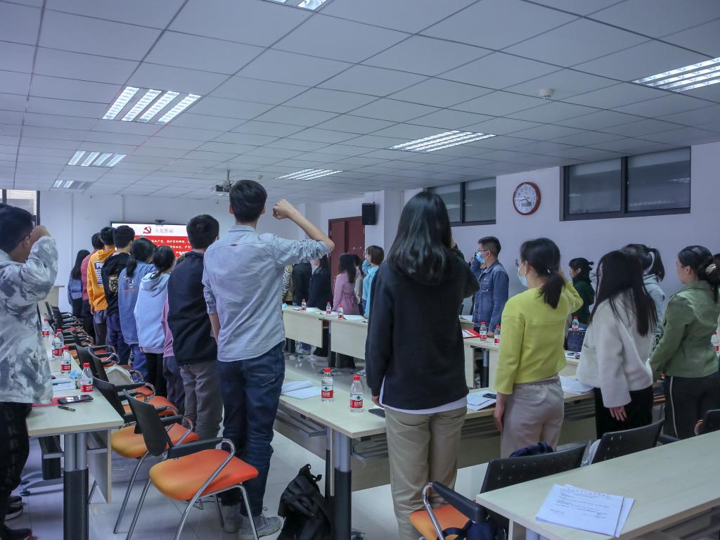 “我志愿加入中国共产党,拥护党的纲领,遵守党的章程……”。在大学生党员们党史学习分享后,pa电子官方网站沈希飞老师领誓,三校青年党员同屏共振,重温入党誓词,感悟初心使命。