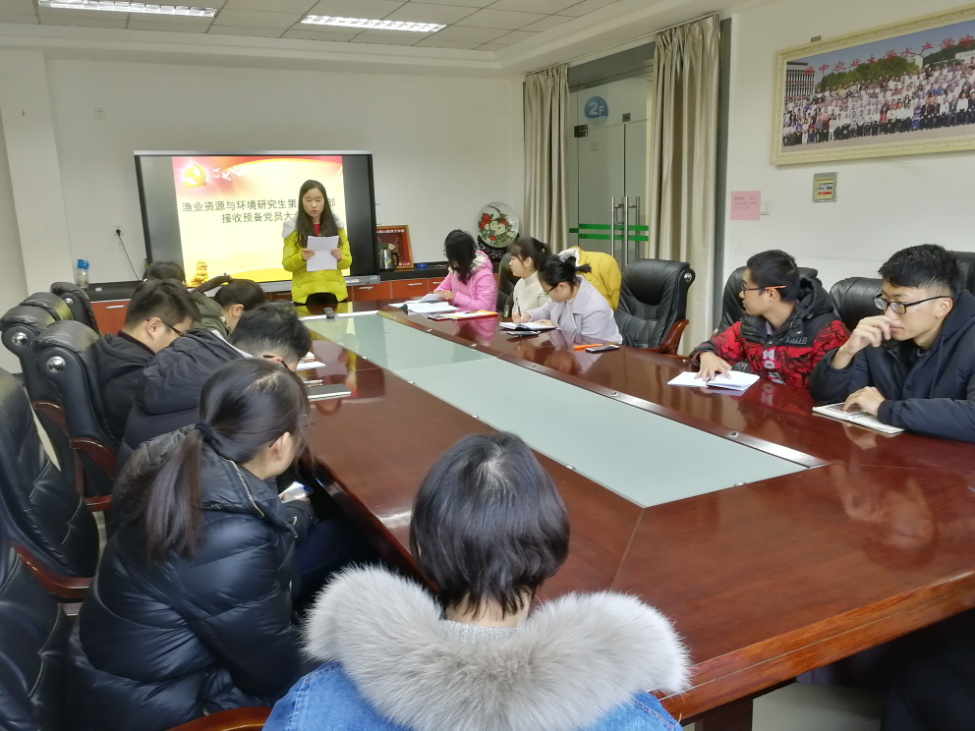 (通讯员 谢丽霞 供图 郭红会)12月10日中午,pa电子官方网站渔业资源与环境研究生第二党支部在水产楼209会议室召开预备党员发展大会,支部党员和积极分子共同参与了本次会议。会议开始,由支部书记谢丽霞介绍了本次会议的流程,确定了监票人和计票人,并由全体正式党员举手表决通过。接着由发展对象彭世贤宣读《入党志愿书》,汇报了自己对党的认识、入党动机、思想情况等。