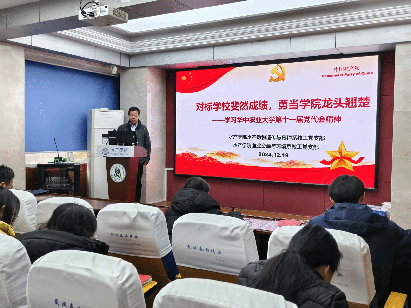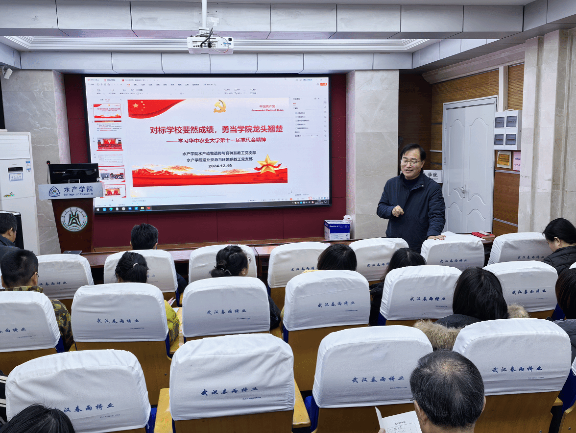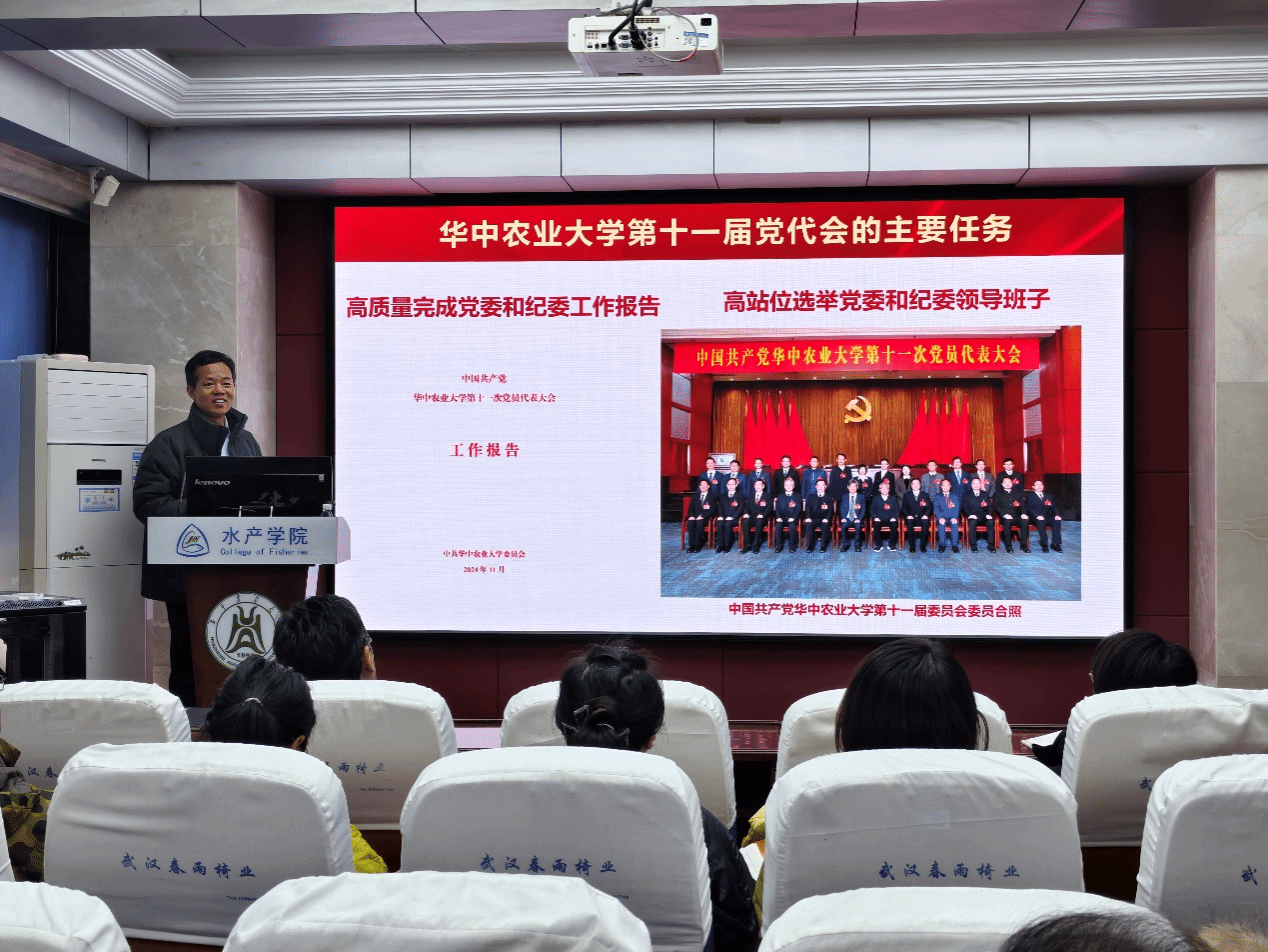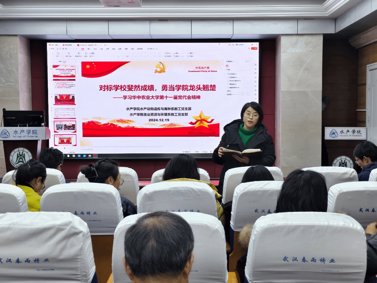 1219上午,在水产楼A105报告厅,pa电子官方网站水产动物遗传与育种系教工党支部、渔业资源与环境系教工党支部开展“精读精讲”联学活动,深入学习贯彻中国共产党pa电子官方网站第十一次代表大会报告精神。两个学系全体教师参加学习活动,学院党委书记秦长平、副书记曹玉琼列席活动水产动物遗传与育种系党支部书记沈志刚主持,渔业资源与环境系党支部书记周琼主讲
