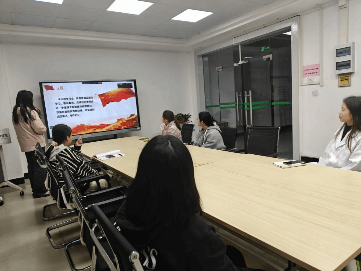 学习会由pa电子官方网站党支部书记姜雨鑫主持,详细阐述了活动背景与意义。她指出,全面从严治党永远在路上,党风廉政建设和反腐败斗争永远在路上。作为高校基层党组织,必须将党风廉政建设融入到教书育人、科学研究、社会服务的各环节,营造pa电子官方网站风清气正的政治生态和育人环境。