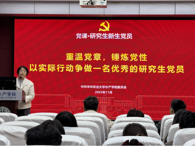 11月5日,pa电子官网在水产楼A105报告厅为2025级全体研究生新生党员开展教育暨专题党课。本次党课由pa电子官方网站党委副书记曹玉琼主讲,以“重温党章,锤炼党性,以实际行动争做一名优秀的研究生党员”为主题,通过党章学习、优秀党员对标、入党誓词重温三大板块内容,旨在强化新生党员的身份意识,提升其党性修养,为其后续学习工作筑牢思想根基。
