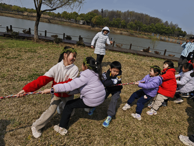 一场激烈的拔河比赛将活动推向了高潮。孩子们分成两队,家长当教练,随着带队的哥哥姐姐们一声口令,孩子们紧紧握住绳子,齐心协力喊着响亮的口号,身体向后倾斜,使出浑身解数为团队荣誉奋力一搏,这时候输赢已不再重要,过程中的携手奋进成为最珍贵的记忆。这不仅是一场力量的较量,更是团队协作与凝聚力的生动展现。