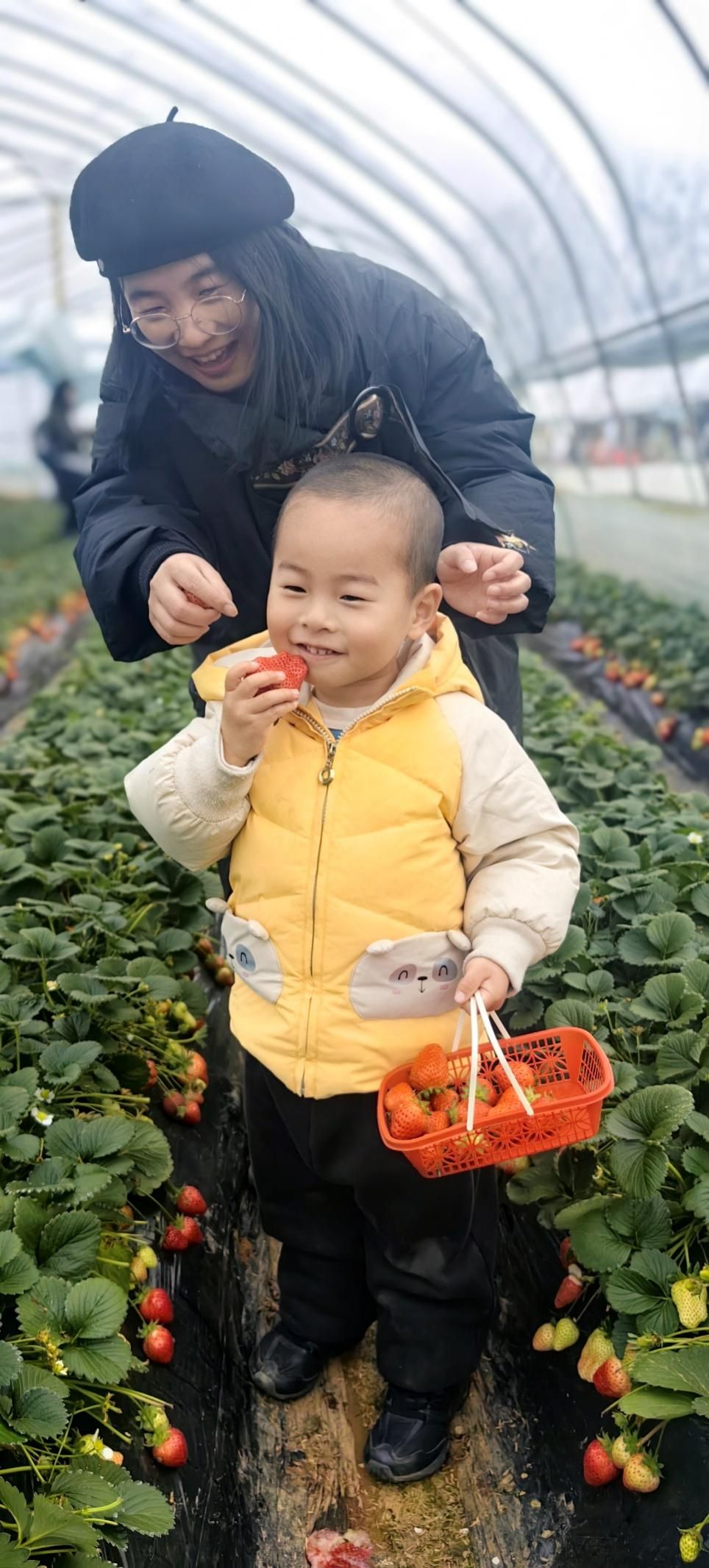 活动最后,大家来到了草莓园,开启了一场甜蜜的采摘之旅。草莓园里,一颗颗鲜红饱满的草莓在绿叶的映衬下格外诱人。孩子们兴奋地穿梭在田间,小心翼翼地采摘着成熟的果实,老师们则在一旁耐心地指导。大家的篮子里渐渐装满了红彤彤的草莓,也装满了满满的幸福与收获,满载而归。