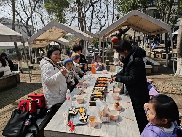 游戏过后,大家期待已久的自助烧烤环节拉开帷幕。烧烤架上,食材在炭火的烘烤下滋滋作响,诱人的香气扑鼻而来。老师们纷纷化身 “大厨”,熟练地翻烤着肉串、蔬菜,孩子们则在一旁帮忙,兴奋地传递着食材和调料。大家围坐在一起,共享美食,欢声笑语回荡在空中。此时,享受的不仅是美食带来的愉悦,更是心灵的交流与碰撞,亲子间、同事间的距离在烟火气息中悄然拉近。