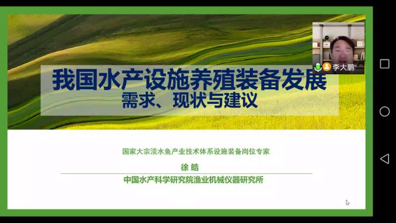 随后徐皓研究员从池塘设施养殖、工厂化养殖、深远海养殖和智慧养殖等方面向大家介绍了我国水产设施养殖技术的发展现状。目前我国已经逐步建立了池塘生态工程化和养殖信息化系统,国家大宗淡水鱼产业技术体系实现了绿色高效养殖模式的构建。徐皓研究员对于未来我国水产设施养殖科技的发展也进行了展望。他认为要继续研究设施养殖机械化作业装备、智能化养殖装备和高效养殖设施与模式,将技术转化为参数,将参数转变为工艺,将工艺转化为工程,并最终实现渔业的工厂化、集约化和智能化。