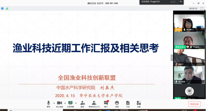 (通讯员孔娟 供图孔娟)4月15日下午15:00-16: 30,中国水产科学研究院副院长刘英杰研究员通过腾讯会议做客pa电子官网水产论坛,从我国渔业研究基本背景、热点和趋势以及渔业科技国际合作三方面展开,和广大师生探讨了近年来渔业科技研究及国际合作的最新消息。报告由pa电子官网高泽霞教授主持,二百余名pa电子官方网站师生在线上参加此次空中学术报告,报告还吸引了来自河南师范大学、水科院长江所、中科院南海所等外单位的专家和同学以及一些地方水产部门研究人员的参与。