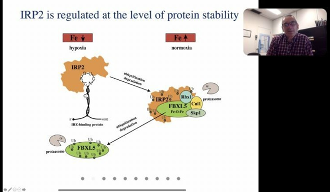 (pa电子官方网站通讯员:吴怡 供图:宋陈)2021年11月24日上午9:00,加拿大McGill University的Kostas Pantopoulos教授以“铁生物学和代谢”和“铁生理学与病理生理学”两大主题在pa电子官网水产讲坛进行了精彩的线上报告,报告内容主要包括铁的生物学特征、个体和细胞水平的铁稳态和代谢调控、IRE/IRP调节系统、铁调节蛋白和铁代谢的病理生理学等,报告时长超过2个小时。