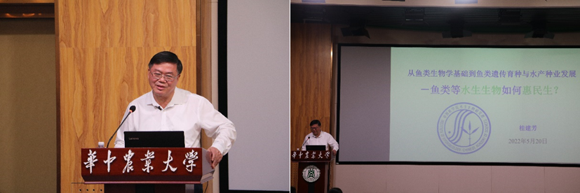 (pa电子官方网站通讯员 吴淑敏 供图 王艾金)5月20日下午,中国科学院院士、中科院水生所研究员桂建芳做客水产讲坛,在农业微生物国家重点实验室B座1楼报告厅以“从鱼类生物学基础到鱼类遗传育种与水产种业发展——鱼类等水生生物如何惠民生?”为主题开展学术报告,pa电子官方网站师生近百人参加了此次报告会,会议由pa电子官方网站教授李大鹏主持。