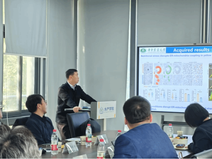 宋玉峰副教授的报告主题为“黄颡鱼肝脂稳态中线粒体介导的细胞器互作网络机制”。黄颡鱼是我国重要的淡水经济养殖鱼类,肝脂代谢紊乱引发的脂肪肝等病害是制约其养殖产业健康发展的关键问题,而肝脂稳态的维持依赖于细胞器间的协同调控,线粒体作为能量代谢核心,在脂质代谢平衡中发挥关键作用,团队围绕该机制开展系统研究。